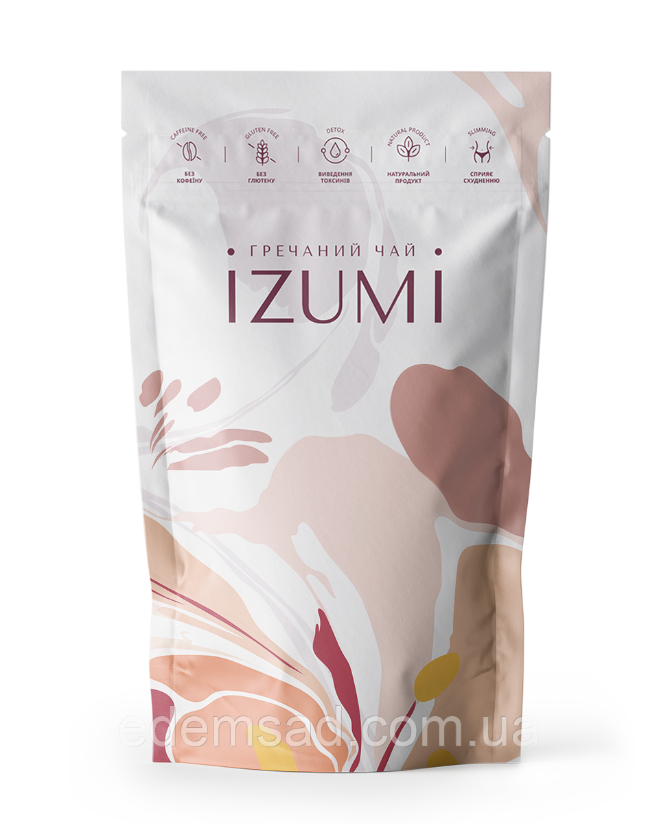 Гречаний чай Izumi складається з молодого насіння чорної татарської гречки, які збираються у високогір'ї суто вручну, далі пресуються в гранули для збереження всіх корисних властивостей продукту.